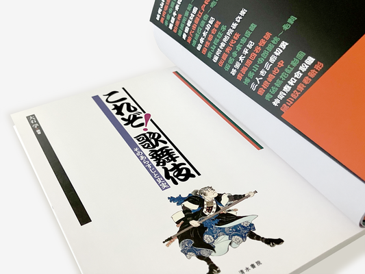 代表的な演目のあらすじとその背景となった史実を解説した歌舞伎の入門書。歌舞伎らしいフォントや色使いを存分に盛り込んだ。