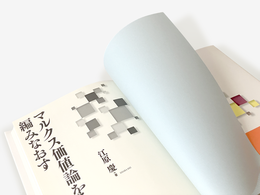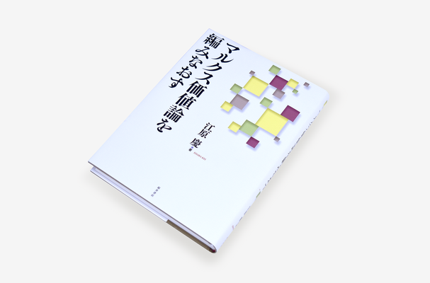 経済学の書。明るいイメージにしたいとのリクエストで白を基調に、「編みなおす」べき物事を抽象的幾何学模様であらわした。