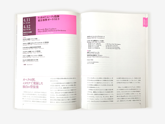 上野で毎年開催されているクラシック音楽の祭典「東京・春・音楽祭」。そこで配布・販売される冊子類の本文組版・レイアウトデザインを担当した。