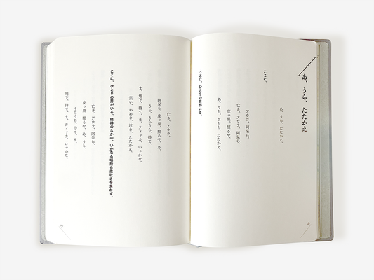 詩集。単語を声に出した時の抑揚をイメージしたタイトルデザイン。角丸の本文フォーマットデザインは鈴木一誌さんによる提案。